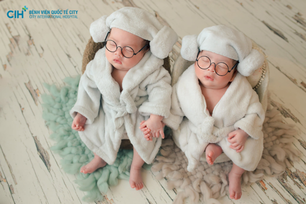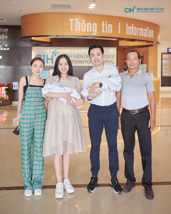 Cặp song sinh nhà Nhạc sĩ Dương Khắc Linh, ca sĩ Sara Lưu. Bé sinh tại Bệnh viện Quốc tế City. Ảnh Facebook DKL