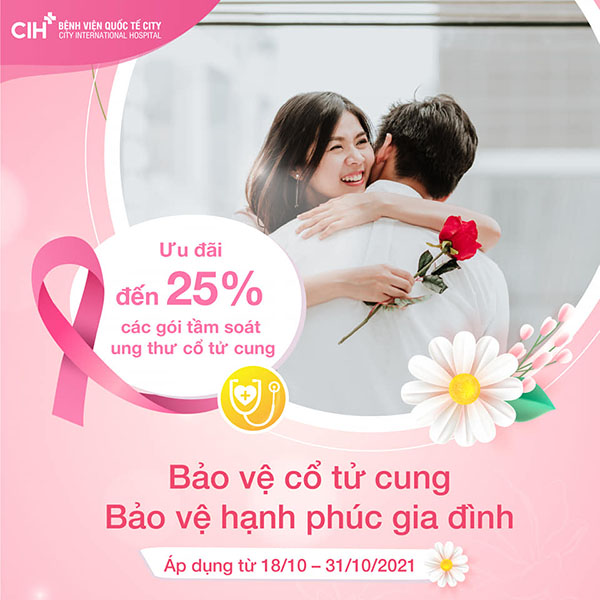Ngoài ra, Bệnh viện còn dành ưu đãi lên 25% gói tầm soát ung thư cổ tử cung. Chương trình bắt đầu từ 19/10/2021 đến hết 31/10/2021.