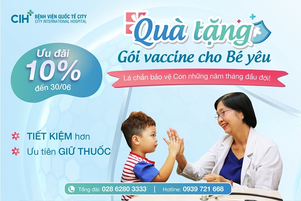 Với mong muốn được chia sẻ với Bố Mẹ trong hành trình chăm sóc Bé yêu những năm tháng đầu đời, từ 01/06 – 30/06/2022, Bệnh viện Quốc tế City GIẢM 10% GÓI VACCINE CHO TRẺ.