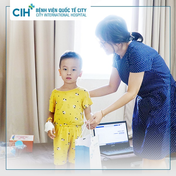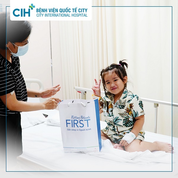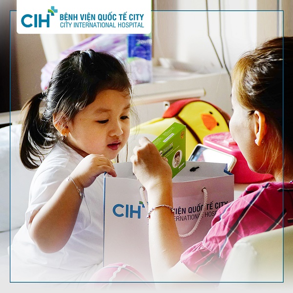 Chiều ngày 6/7, BVQT City đã trao tặng đến các Bé đang điều trị nội trú những phần quà ý nghĩa, gồm: Sữa cao cấp Glico của Nhật Bản, Nước muối sinh lý chứa bào tử lợi khuẩn Navax.