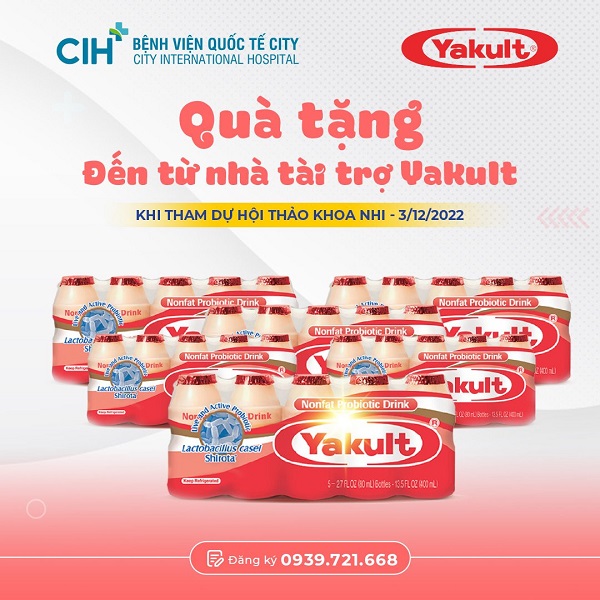 Bệnh viện Quốc tế City gửi lời cảm ơn sâu sắc đến các đơn vị tài trợ: Nhãn hàng Nước uống ion Pocari, sữa chua Yakulk, Mamamy, Cộng đồng bầu, Pom Pom, Công ty Dược miền Nam Nutri, Herblush đã đồng hành cùng các Hội thảo của CIH nói chung và Hội thảo Khoa Nhi ngày 3/12 nói riêng.
