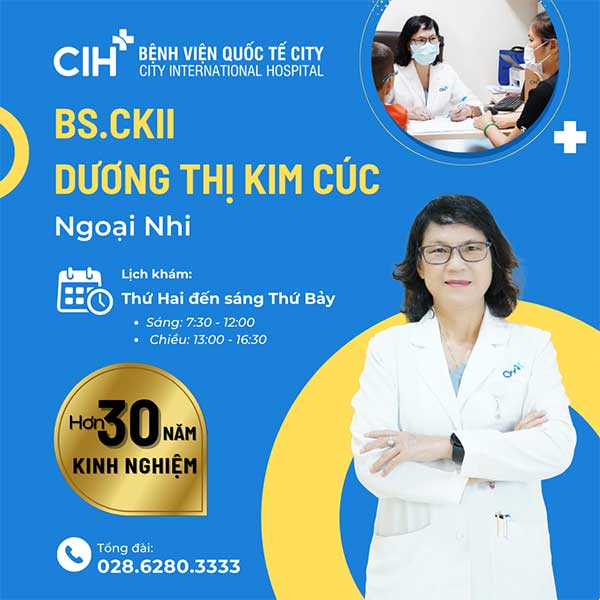 Bác sĩ Dương Thị Kim Cúc có nhiều năm kinh nghiệm làm việc ở Bệnh viện Chợ Rẫy với lĩnh vực chuyên sâu về Ngoại Nhi, Tiết Niệu… Với bề dày kinh nghiệm, tình yêu nghề và luôn xem bệnh nhân như những người thân yêu của mình, bác sĩ Cúc đã mang lại sức khỏe cho hàng nghìn bệnh nhi.
