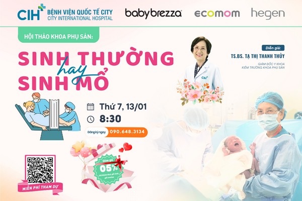 Sinh thường hay sinh mổ luôn là nỗi băn khoăn của bất kỳ thai phụ nào, đặc biệt là đối với các mẹ sinh con đầu lòng. Để giúp mẹ bầu hiểu rõ chi tiết về vấn đề này, Bệnh viện Quốc tế City sẽ tổ chức hội thảo tiền sản chủ đề: Sinh thường hay sinh mổ lúc 8h30, thứ Bảy, ngày 13/01/2024 với sự trình bày và tư vấn bởi chuyên gia sản phụ khoa đầu ngành – TS.BS. Tạ Thị Thanh Thủy – Giám đốc Y khoa kiêm Trưởng khoa Phụ Sản CIH.