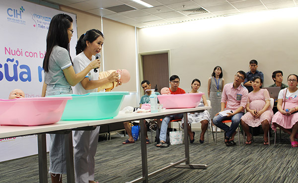 Ngoài ra, tham dự lớp tiền sản sáng 29/7, mẹ bầu còn được các điều dưỡng hướng dẫn cách tắm bé, tư thế cho bé bú, tập yoga giúp mẹ bầu thư giãn thoải mái. Đặc biệt, Bệnh viện Quốc tế City đã dành nhiều ưu đãi cho mẹ bầu khi mua gói khám thai- sinh con sẽ được Giảm 5% gói sanh và tặng 1 đêm lưu viện.