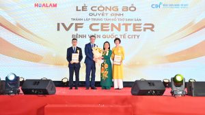 Khoảnh khắc vinh dự và xúc động khi Ông Đinh Anh Tuấn – Vụ trưởng Vụ Sức khỏe Bà mẹ và Trẻ em đã trao quyết định công nhận Bệnh viện Quốc tế City được thực hiện kỹ thuật thụ tinh trong ống nghiệm. Tiếp theo, TS.BS. Hà Anh Đức – Cục trưởng Cục Quản lý Khám chữa bệnh, Bộ Y tế đã trao quyết định phê duyệt danh mục kỹ thuật hỗ trợ sinh sản. cho Bệnh viện Quốc tế City.