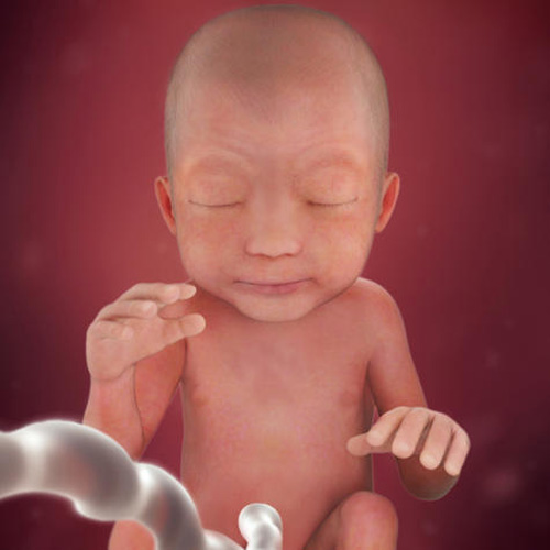 Các bộ phận cơ thể bé đã phát triển cân đối hơn và giờ đây, bé giống như một phiên bản thu nhỏ của một em bé sơ sinh khi chào đời. Môi, mí mắt và lông mày của bé hình thành rõ rệt hơn. Đồng thời, những mầm răng tí hon cũng đã xuất hiện bên dưới lợi của bé.