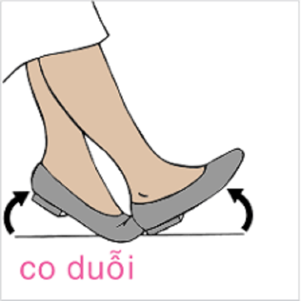 | 12 | ![]() | Hoặc đá chân co duỗi hai chân xen kẽ khi ngồi lâu. Co và duỗi nhẹ hai chân xen kẽ nhau (đá chân trước sau xen kẽ), kết hợp nhón gót (lúc co chân lại) và nhấc bàn chân (lúc duỗi chân ra). |
