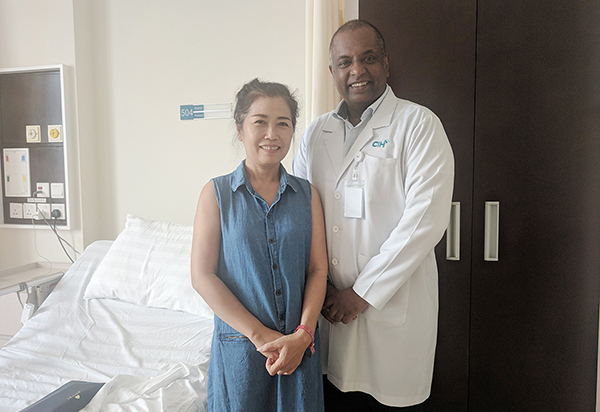 Ths.BS Mai Thy và PGS.BS Mahen Nadarajah chụp hình cùng bệnh nhân.