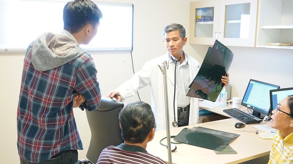 Bác sĩ Trần Chí Cường đang tư vấn cho bệnh nhân sau khi có kết quả chụp phim.